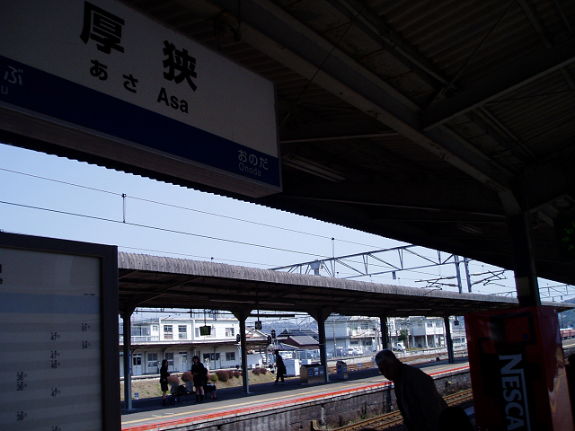 景色もろくに楽しめないまま厚狭駅に到着。山陽新幹線も久々にお目見えです。
