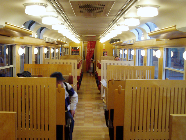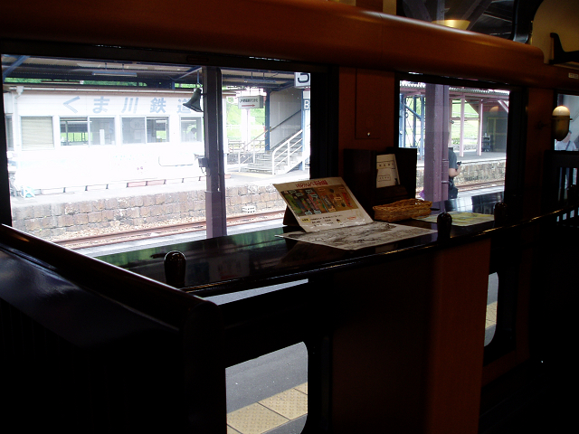 食べたら駅のほうに戻り、次の列車、観光列車いさぶろう・しんぺい号に乗車。吉松まで行きます。