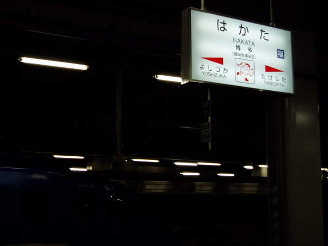 途中で日が昇り、、博多などを通り、二日市駅へ到着。
