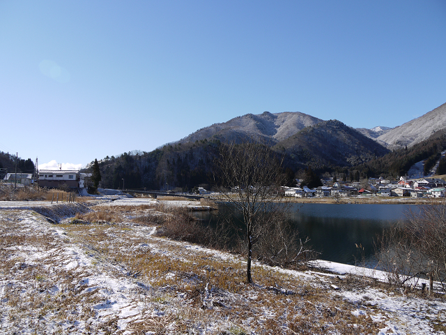 会津宮下を出ると、川沿いにゆっくりと進んでいきます。民家などはあまりありません。