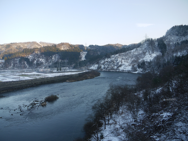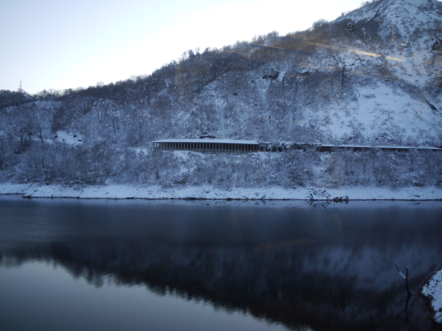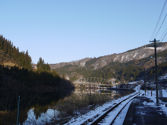 途中の田子倉駅付近(おそらく)。田子倉駅は、田子倉トンネルと六十里越トンネル(後述)の2つの長いトンネルの間にある臨時駅です。冬場は周辺の国道も閉鎖、列車自体も通過するので、まさに秘境駅。