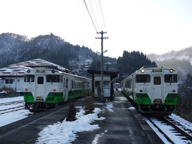 帰ってきて財布の中の残金を見たらほんの数円くらいしか残っていませんでした(笑)。去年の初冬ごろから例年より降雪量が半端なく多かったので、もしダイヤが乱れて身動きが取れなくなっていたら完全に詰んでましたね。向こうには知り合いも居ないし。例年より降雪量が半端なく多いくせに日本屈指の豪雪ローカル線ばかりめぐっていたので、どうなることやらと思いました。実際、私が旅に行った日の前後は豪雪で、私が行った日だけ雪が小康状態だったようでした。本当に運が良かったと思います。もう次からはこんな無茶はしないようにします(笑)。
