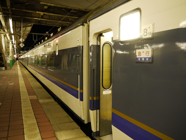 そして、きたぐには出発。それから何分かして、夜行快速ムーンライトえちごがホームに入ってきました。