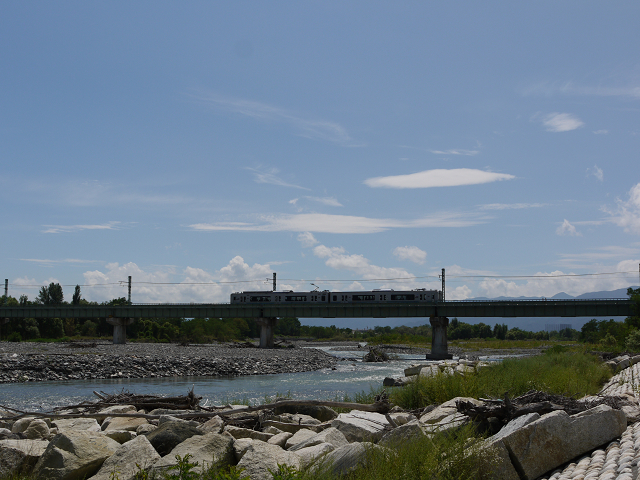 次の列車が来るまでの時間を利用し、大町方面の列車が橋を渡るところを撮影しました。