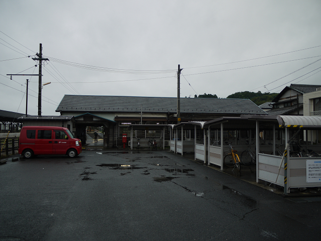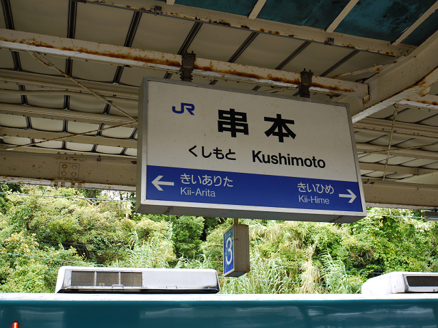 終点の串本に到着した頃は土砂降りでした。JR西日本と東海の境界駅です。