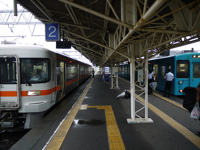 先述の通りこの日は台風が接近しており、すでにこの先を通る特急ワイドビュー南紀は運休を決めていたようです。東海区間の普通列車も大雨のため運転見合わせで再開のめどは立っていないようでした。
