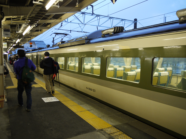 翌朝白馬に到着。ムーンライト信州から人が降りて行きます。
