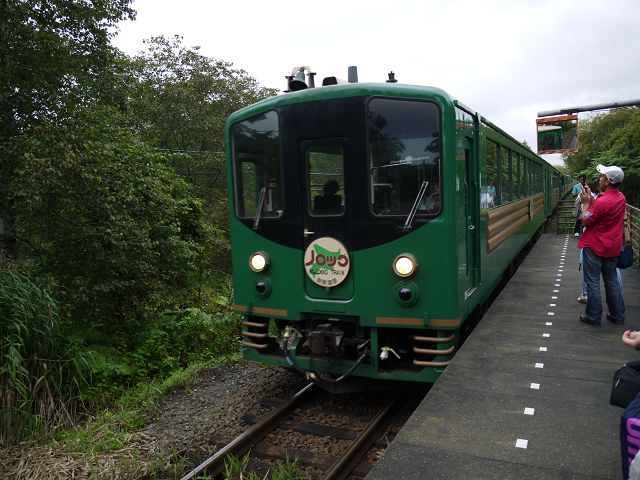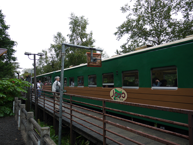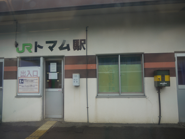 列車は途中、山の中をを行きます。途中のトマム駅にて。リゾート地で有名ですね。